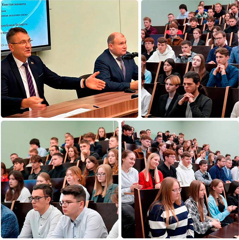 Накануне Министр связи и информатизации Константин Шульган встретился со студентами Белорусской государственной академии связи. Темой разговора стало важнейшее политическое событие предстоящего периода – выборы Президента Республики Беларусь. Несмотря на серьезность темы, разговор получился доверительным. Руководитель отрасли отвечал на вопросы студентов, делился своим жизненным и профессиональным опытом. И конечно обозначил свое видение текущей ситуации. «Выборы Президента – важнейшее событие для любой страны. Но нынешняя электоральная компания особенная. За последние годы мы во всей красе увидели методики цветных революций и получили определенные навыки. С учетом этого опыта, можно с полной ответственностью говорить, что на кону независимость страны, – отметил министр. – Поэтому выбор, который нам предстоит сделать, возможно один из самых ответственных в нашей жизни». «В такие периоды, когда можно повлиять на ход событий, крайне важно понимать, чего мы хотим. – обратился к молодым людям Константин Шульган. – Наверняка все мы все хотим мира, хороших условий для жизни, стабильной, высокооплачиваемой работы, уверенности в завтрашнем днем. Хотим сохранить общечеловеческие ценности, которые где-то уже подвергаются сомнению».Министр обратил внимание, что в теме встречи была обозначена фраза «Будущее зависит от нас». «Так вот от вас оно зависит дважды, -- обратился к студентам руководитель отрасли. – И я надеюсь, что что у вас есть видение своей роли в жизни нашей страны». «И помните, что никто со стороны не хочет сделать нас богаче и сильнее. Это наша с вами задача. Задача, которая нам по силам, – обратился министр к будущим связистам. – Нам есть чем гордиться».Руководитель отрасли напомнил, что за последние 30 лет в области связи развились такие компетенции и технологии, которые разошлись по всем отраслям экономики«Но наши успехи не дают нам права останавливаться и почивать на лаврах. Знания должны совершенствоваться», – подчеркнул Константин Шульган. Касаясь вопросов экономики, министр обратил внимание, что выборы Главы государства «очень грамотно определены по дате проведения», так как со следующего года начинается новая пятилетка в экономике страны. Министр напомнил молодым людям, что предстоящая электоральная кампания по выборам Президента, это определенная точка политической модернизации в стране, которая проходит в рамках реализации решений референдума 2022 года. Константин Шульга выразил уверенность, что точка эта будет яркая и «все мы сделаем правильный выбор, который позволит нам жить в сильной, независимой и процветающей стране». Малюнак PDF