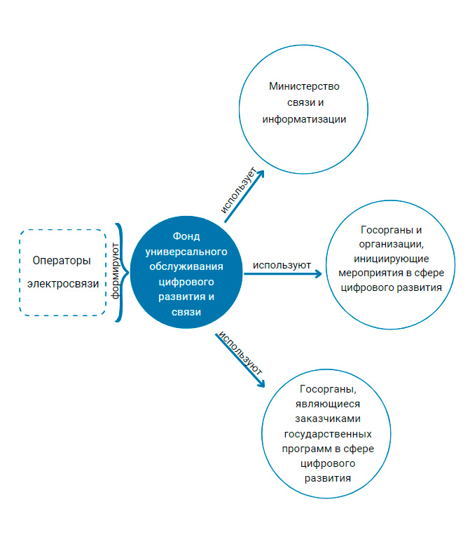 Парадак фарміравання і выкарыстання сродкаў фонду універсальнага абслугоўвання ўстаноўлены ў Палажэнні аб парадку фарміравання і выкарыстання сродкаў рэспубліканскага фонду універсальнага абслугоўвання сувязі і інфарматызацыі, зацверджанага Указам № 13. Схематычна ён прадстаўлены на малюнку ніжэй.