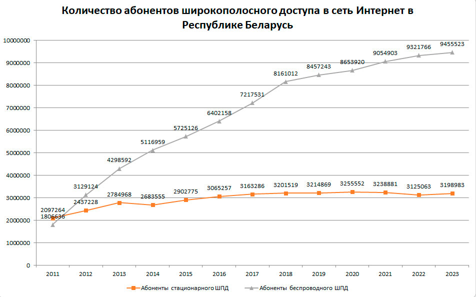 Агульная колькасць абанентаў і карыстальнікаў, якія маюць доступ у сетку Інтэрнэт з выкарыстаннем тэхналогій стацыянарнага шырокапалоснага доступу на пачатак другога паўгоддзя 2024 года склала 3,235 млн.