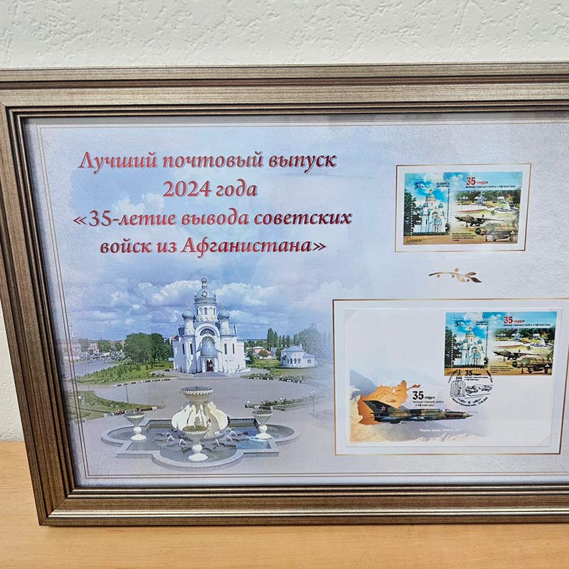 Справочно: Министерством связи и информатизации Республики Беларусь и белорусской почтой был подготовлен почтовый проект, состоящий из почтового блока, конверта Первого дня и специального штемпеля. Гашение почтового блока «35-летие вывода советских войск из Афганистана» проходило 13 февраля 2024 года на почтамте Минска и в отделении почтовой связи № 4 г.Березы Брестской области.
