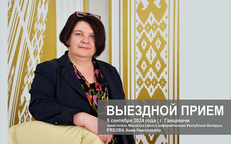 5 сентября 2024 года с 11:30 до 12:30 в Ганцевичском участке электросвязи Барановичского ЗУЭС Брестского филиала РУП «Белтелеком» заместитель Министра связи и информатизации Рябова Анна Николаевна проведет прием граждан и юридических лиц с одновременным подключением «прямой телефонной линии» по телефону: 8 (01646) 62-6-22. Жители г. Ганцевичи и Ганцевичского района смогут задать вопросы, затрагивающие деятельность в области связи (как почтовой, так и электросвязи) и цифрового развития. Предварительная запись осуществляется по телефону: 8 (0163) 68-11-88 в рабочие дни с 9:00 до 13:00 и с 14:00 до 16:00. Место проведения приема: г. Ганцевичи, ул. Октябрьская, 6, Ганцевичский участок электросвязи, каб. 308 Изображение PDF