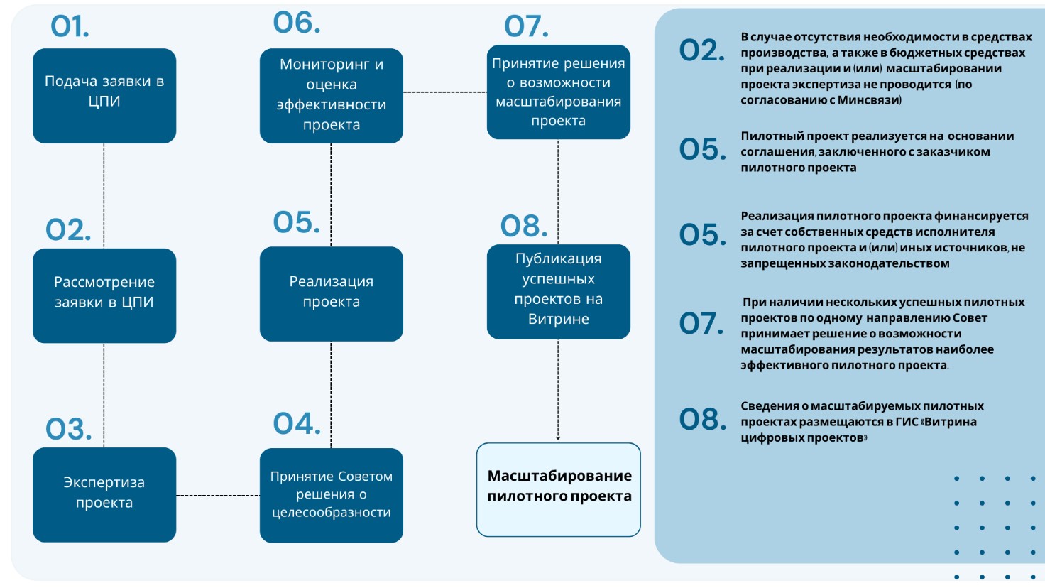 С 16 сентября объявляется начало приема заявок на реализацию пилотных проектов в сфере цифрового развития по направлению «Технологии цифрового земледелия в сельскохозяйственных предприятиях – средства автоматизированного управления и мониторинга сельскохозяйственной техники и оборудования; геоинформационные системы – цифровой рельеф, электронные границы полей; средства принятия решений и управления эффективностью предприятий – деятельность в области растениеводства (код группировки по ОКРБ 005-2011: 01111, 01131, 01132)». Приглашаем к подаче заявок на участие в реализации пилотных проектов по данному направлению белорусские ИТ-компании, которые имеют собственные разработки, способные решить задачи по масштабному переходу сельскохозяйственных предприятий на использование технологий цифрового земледелия. Для того, чтобы принять участие в отборе на реализацию данных проектов, необходимо до 27 сентября 2024 г. (включительно) подать заявку по установленной форме, приложив к ней предусмотренный перечень документов. Перед формированием пакета документов предлагаем внимательно ознакомиться с рекомендациями по их подготовке. В целом пилотирование проекта предполагает прохождение следующих этапов - смотрите на рисунке ниже. Более подробно с порядком реализации пилотных проектов можно ознакомиться, изучив соответствующее Положение, утвержденное Указом Президента Республики Беларусь от 29 ноября 2023 г. № 381 «О цифровом развитии» , а также постановление Министерства связи и информатизации Республики Беларусь от 20 февраля 2024 г. № 2 «Об определении формы заявки на реализацию пилотного проекта, перечня прилагаемых к ней документов и порядка их подачи» или в прилагаемом материале Приглашаем к участию! обозначения на рисунке: ЦПИ – Центр перспективных исследований ОАО «Гипросвязь» Совет – Совет по проектам в сфере цифрового развития при Минсвязи Витрина – ГИС «Витрина цифровых проектов» (цифровые-проеты.бел) Изображение PDF