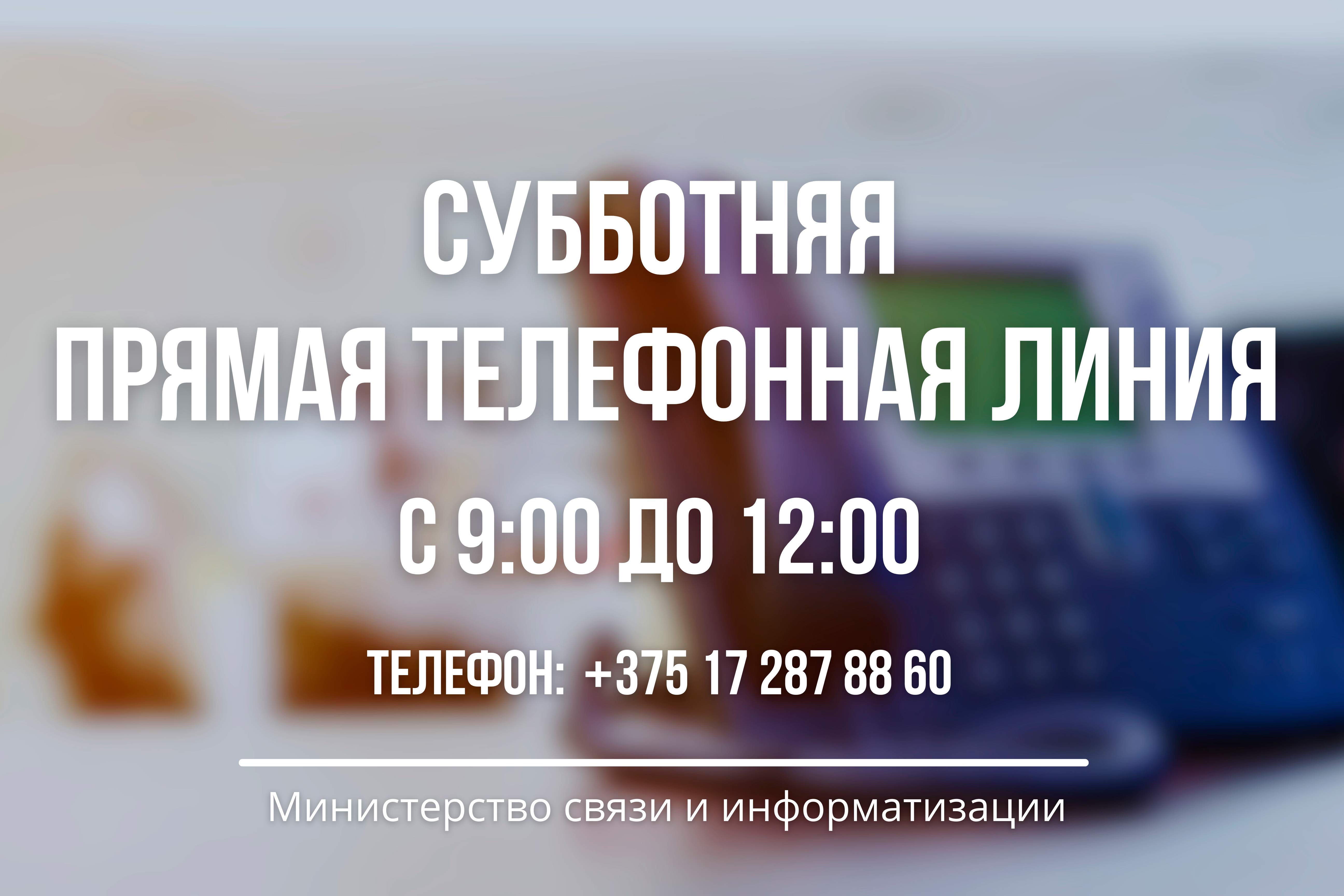 Каждую субботу в Минсвязи организована «прямая телефонная  линия» с 9.00 до 12.00 по телефону  +375 (17) 287 88 60.
