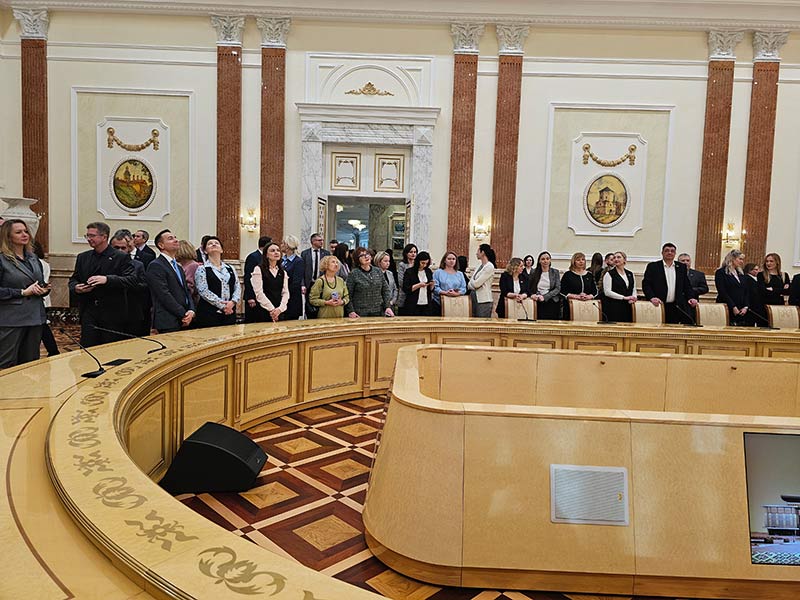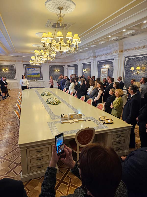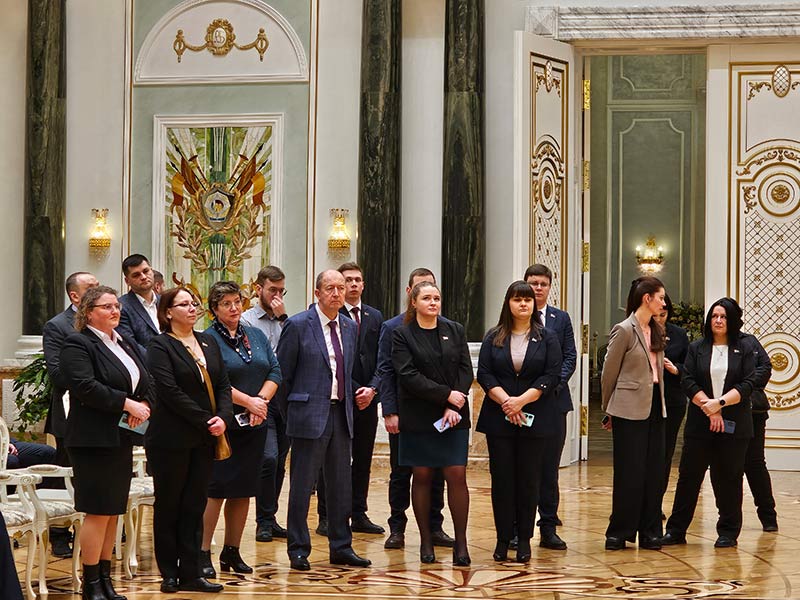 Более 100 человек – работников и ветеранов Министерства связи и информатизации Республики Беларусь и двух подведомственных организаций (Государственного предприятия «БелГИЭ» и РУП «Белпочта») с экскурсией побывали во Дворце Независимости. Поприветствовать гостей вышла пресс-секретарь Президента Наталья Эйсмонт, которая провела познавательную экскурсию и рассказала о самых интересных случаях из жизни Дворца Независимости. В ходе экскурсии узнали об истории строительства и оформления этого комплекса, о вкладе в возведение, обустройство и оформление Дворца белорусских архитекторов, строителей, мастеров, художников и ряда предприятий страны, которые выполнили свои работы на высочайшем уровне. Также услышали исторические факты о знаковых политических событиях и мероприятиях, которые происходили во Дворце, о работе Президента, о приемах гостей высокого уровня. Побывали в основных залах Дворца Независимости, зимнем саду, пресс-центре, символичном музее преподнесенных Главе государства подарков и сувениров. Для Минсвязи 2025 год юбилейный. 5 января 1955 года на базе Уполномоченного Министерства связи СССР было образовано союзно- республиканское Министерство связи Белорусской ССР. Вначале текущего года отметили 70 лет со дня образования Минсвязи. Связь всегда была важной частью жизни государства, а задачи, которые отрасль решала на всех исторических этапах, можно проследить в том, как менялось название органа управления. В 1990 году Министерство связи получает дополнительный спектр задач, а с ним и дополнительное слово в названии – «информатики», с 2004 года - Министерство связи и информатизации. Экскурсия во Дворец Независимости стала для нас не только увлекательным путешествием в историю и посещением тех залов в которых проходили знаковые политические события и мероприятиях, но и символичным событием в контексте 70-летия Министерства связи и информатизации Республики Беларусь Изображение Изображение Изображение Изображение PDF