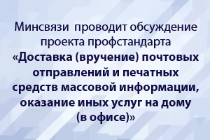 Министерство связи и информатизации Республики Беларусь проводит профессиональное обсуждение проекта профессионального стандарта «Доставка (вручение) почтовых отправлений и печатных средств массовой информации, оказание иных услуг на дому (в офисе)»На профессиональное обсуждение вынесен проект профессионального стандарта с характеристикой содержания трудовых функций и требований к квалификации работников, необходимых при доставке (вручении) почтовых отправлений и печатных средств массовой информации, оказании иных услуг.В ходе профессионального обсуждения рассмотрению подлежат: достаточность количества, правильность формулировки содержания обобщенных трудовых функций, трудовых функций и трудовых действий в проекте профессионального стандарта;обоснованность и достаточность необходимых умений, навыков и знаний для выполнения работником соответствующих трудовых функций и трудовых действий;обоснованность требований к образованию работника, стажу работы;правильность установления наименований профессий рабочих (должностей служащих);а также иная информация, содержащаяся в проекте профессионального стандарта. Замечания (предложения) по проекту просим направлять на электронный адрес «Diyga@mpt.gov.by» или «parhomenko@belpost.by».Профессиональное обсуждение продлится до 15 августа 2023 г. PDF