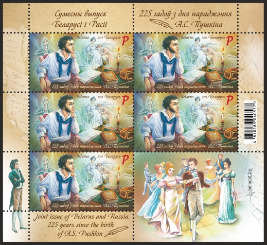 6 июня 2024 года Министерство связи и информатизации Республики Беларусь выпускает в обращение почтовую марку «225 лет со дня рождения А.С. Пушкина». В 2024 году отмечается 225-летие со дня рождения великого русского поэта. В честь этого события Беларусь и Россия осуществили совместный выпуск почтовых марок. На почтовой марке и купоне – иллюстрации к роману в стихах «Евгений Онегин». На конверте Первого дня – иллюстрации к поэме «Руслан и Людмила», «Сказке о царе Салтане». В день выпуска почтовой марки в обращение на почтамте Минска будет проводиться специальное гашение на конверте «Первый день». К данному выпуску подготовлена карточка для картмаксимума. Художник почтовой марки, карточки, спецштемпеля и конверта «Первый день» Виктор Чайчук, дизайн Евгения Бедоник. Пушкин Александр Сергеевич (26.05 (06.06) 1799, Москва – 29.01 (10.02) 1837) – русский поэт, драматург, прозаик, историк, литературный критик и журналист. Создатель современного русского литературного языка. Подробности на сайте Белпочта: https://belpost.by/philately/infolists/3744 Изображение Изображение Изображение PDF