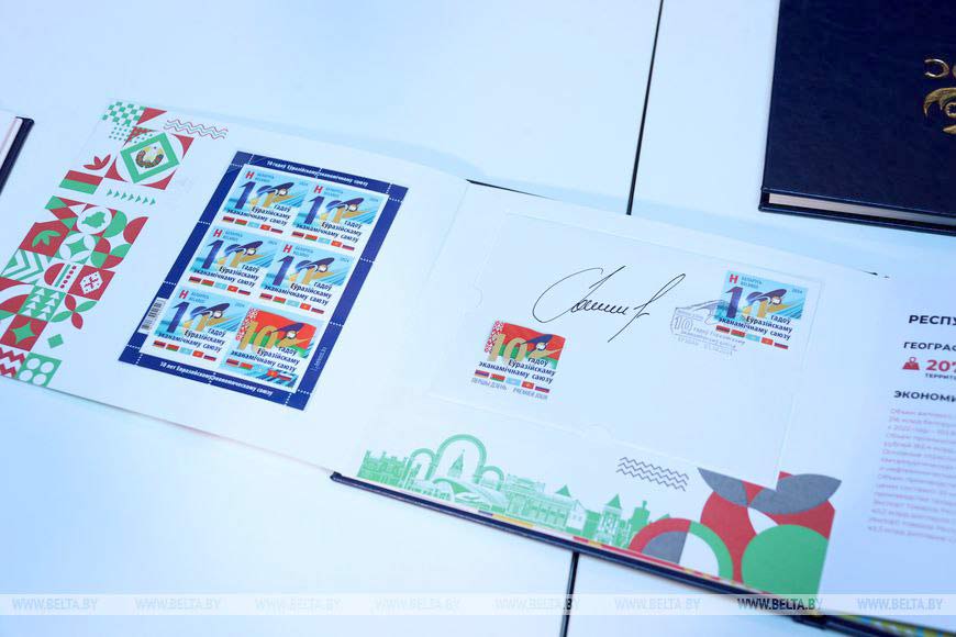 Премьер-министры стран ЕАЭС ввели в обращение почтовые марки, посвященные 10-летию подписания Договора о Евразийском экономическом союзе. В рамках заседания Евразийского межправительственного совета в Ереване состоялась официальная церемония гашения почтовых марок по случаю десятилетия подписания Договора о Евразийском экономическом союзе с участием глав правительств государств - членов ЕАЭС. В церемонии приняли участие премьер-министр Беларуси Роман Головченко, премьер-министр Армении Никол Пашинян, премьер-министр Казахстана Олжас Бектенов, председатель Кабинета министров - руководитель Администрации Президента Кыргызской Республики Акылбек Жапаров и председатель правительства России Михаил Мишустин. Первый выпуск специальных евразийских почтовых марок с участием глав правительств государств союза состоялся в 2015 году и был посвящен подписанию Договора о ЕАЭС. Второй выпуск (2019 год) посвящался пятилетию создания Евразийского экономического союза. Третий выпуск (2022 год) был приурочен к десятилетию Евразийской экономической комиссии. Таким образом, выпуск 2024 года - четвертый по счету. Источник BELTA.BY Изображение Изображение Изображение PDF