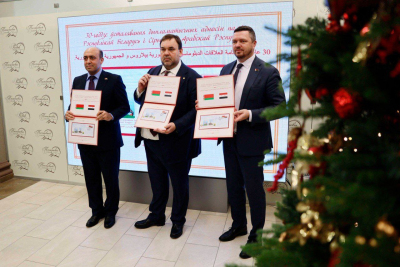 Сегодня, 27 ноября, в «Почтовом салоне» на почтамте Минска состоялась презентация почтового проекта «30-летие установления дипломатических отношений между Республикой Беларусь и Сирийской Арабской Республикой». В церемонии торжественного гашения конверта с оригинальной маркой специальным памятным штемпелем приняли участие: первый заместитель Министра связи и информатизации Республики Беларусь Ткач Павел Николаевич; заместитель Министра иностранных дел Республики Беларусь Шестаков Евгений Андреевич; Чрезвычайный и Полномочный Посол Сирийской Арабской Республики в Республике Беларусь Мохаммад аль-Умрани. Дипломатические отношения между двумя странами установлены 26 августа 1993 года. С ноября 1998 года функционирует Посольство Беларуси в Сирии, с июля 2007 года – Посольство Сирии в Беларуси. Подробности на BELPOST.BY Изображение PDF