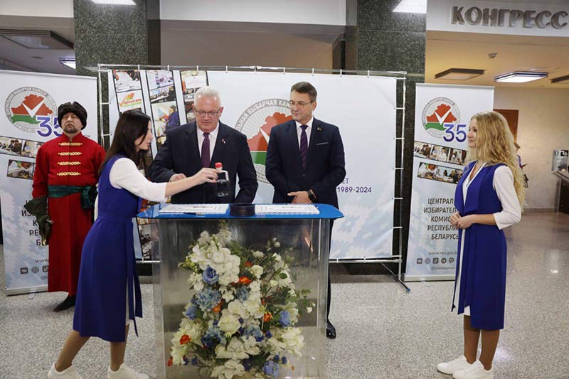 4 декабря в Минске в рамках торжественного заседания ЦИК Беларуси состоялась церемония официального гашения почтового проекта «Центральная избирательная комиссия Республики Беларусь». В церемонии торжественного гашения приняли участие:Министр связи и информатизации Республики Беларусь Константин Шульган,Председатель Центральной избирательной комиссии Игорь Карпенко. На конверте изображены рисунки победителей и призеров республиканского конкурса "Выборы глазами детей": "Сделай свой выбор!", Виктория Юкович (17 лет), "Семьей на выборы", Дарья Данилович (15 лет), "Мой папа и мама участвуют в выборах", Ульяна Голубева (8 лет). Тираж конверта 10 тыс. Дизайн конверта и спецштемпеля Елены Медведь. Центральная избирательная комиссия Республики Беларусь является постоянно действующим государственным органом, осуществляющим организацию и проведение выборов. Образована 4 декабря 1989 года. За 35 лет своего существования организовала и провела 4 республиканских референдума и 27 избирательных кампаний различного уровня. Изображение Изображение Изображение Изображение PDF