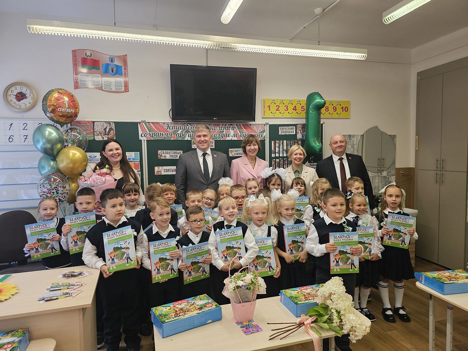 Министр вручил первоклассникам подарок от Президента Республики Беларусь — книгу «Беларусь - наша Радзіма». Также от Минсвязи каждый первоклассник получил символичный портфель с канцтоварами, а для класса были переданы канцелярские принадлежности.
