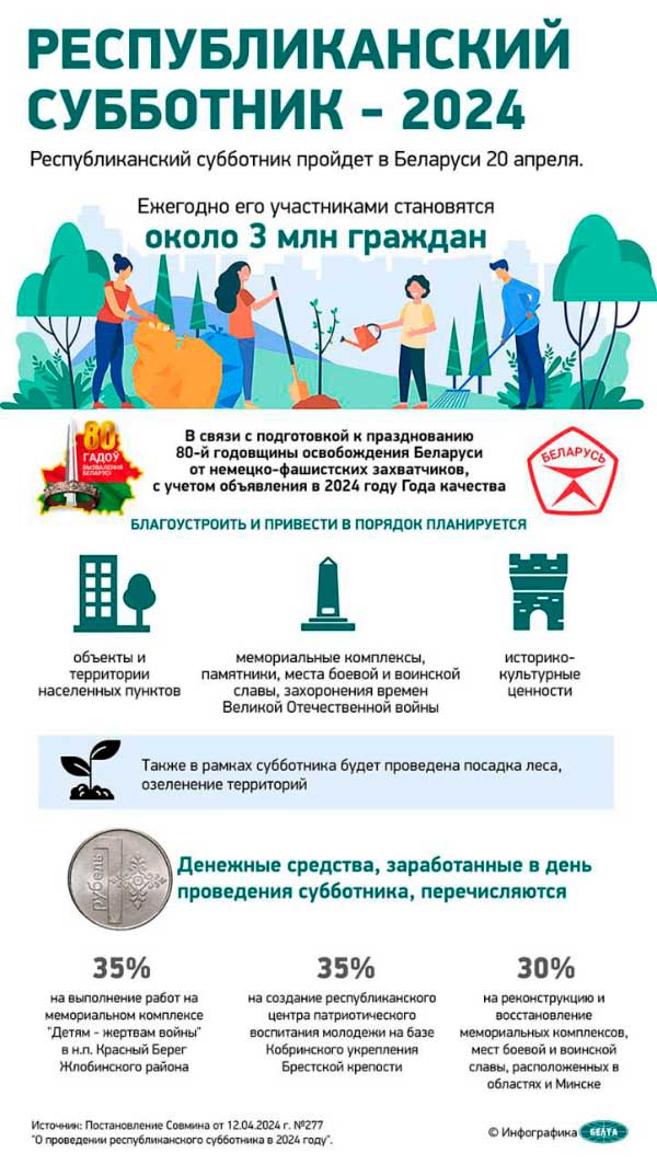 Сегодня,   20-го апреля, в Беларуси🇧🇾 проходит  республиканский субботник – трудовая акция по благоустройству и наведению порядка.