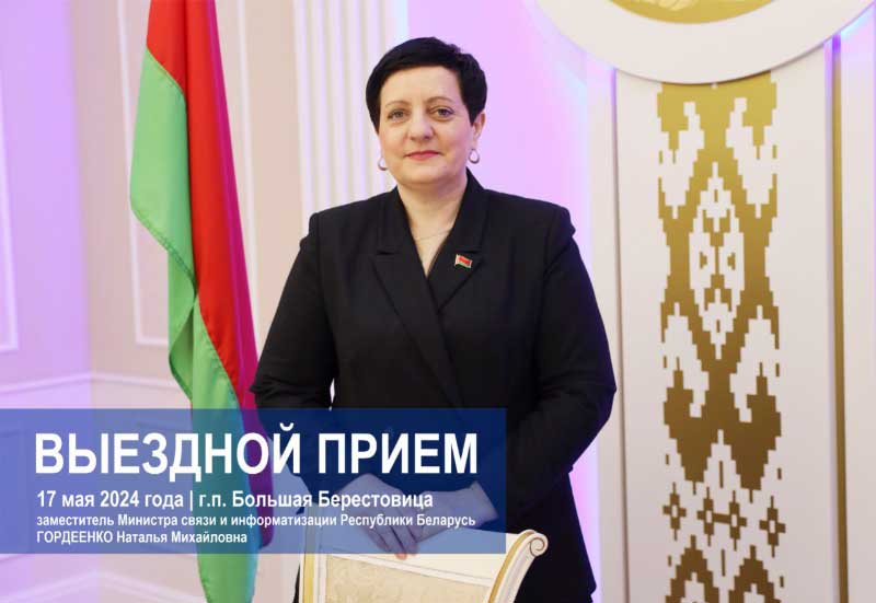 17 мая 2024 года с 12.00 до 13.00 заместитель Министра связи и информатизации Республики Беларусь Гордеенко Наталья Михайловна проведет выездной прием граждан и юридических лиц в Берестовицком участке почтовой связи Волковысского регионального узла почтовой связи с одновременным подключением «прямой телефонной линии». Жители г.п. Большой Берестовицы и Берестовицкого района смогут задать вопросы, затрагивающие деятельность в области связи (как почтовой, так и электросвязи) и цифрового развития. Место проведения приема: г. п. Большая Берестовица ул. Красноармейская, д. 22 Телефон для прямой телефонной линии – 8 (01511) 73515 Предварительная запись на прием будет осуществляться с по телефону 8 (0511) 73515 Изображение PDF
