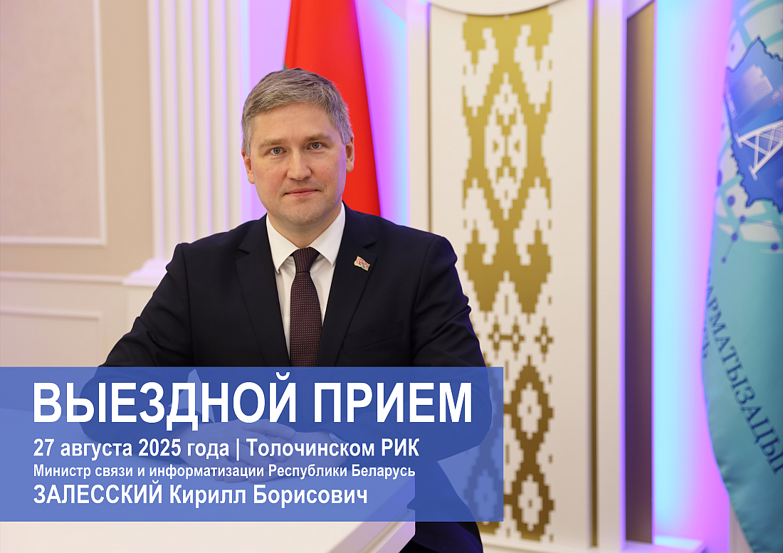 27 августа 2025 года с 12:00 до 13:00  в Толочинском районном исполнительном комитете Министр связи и информатизации Республики Беларусь Залесский Кирилл Борисович проведет прием граждан и юридических лиц с одновременным подключением «прямой телефонной линии» по телефону: 8 (02136) 5 75 67.