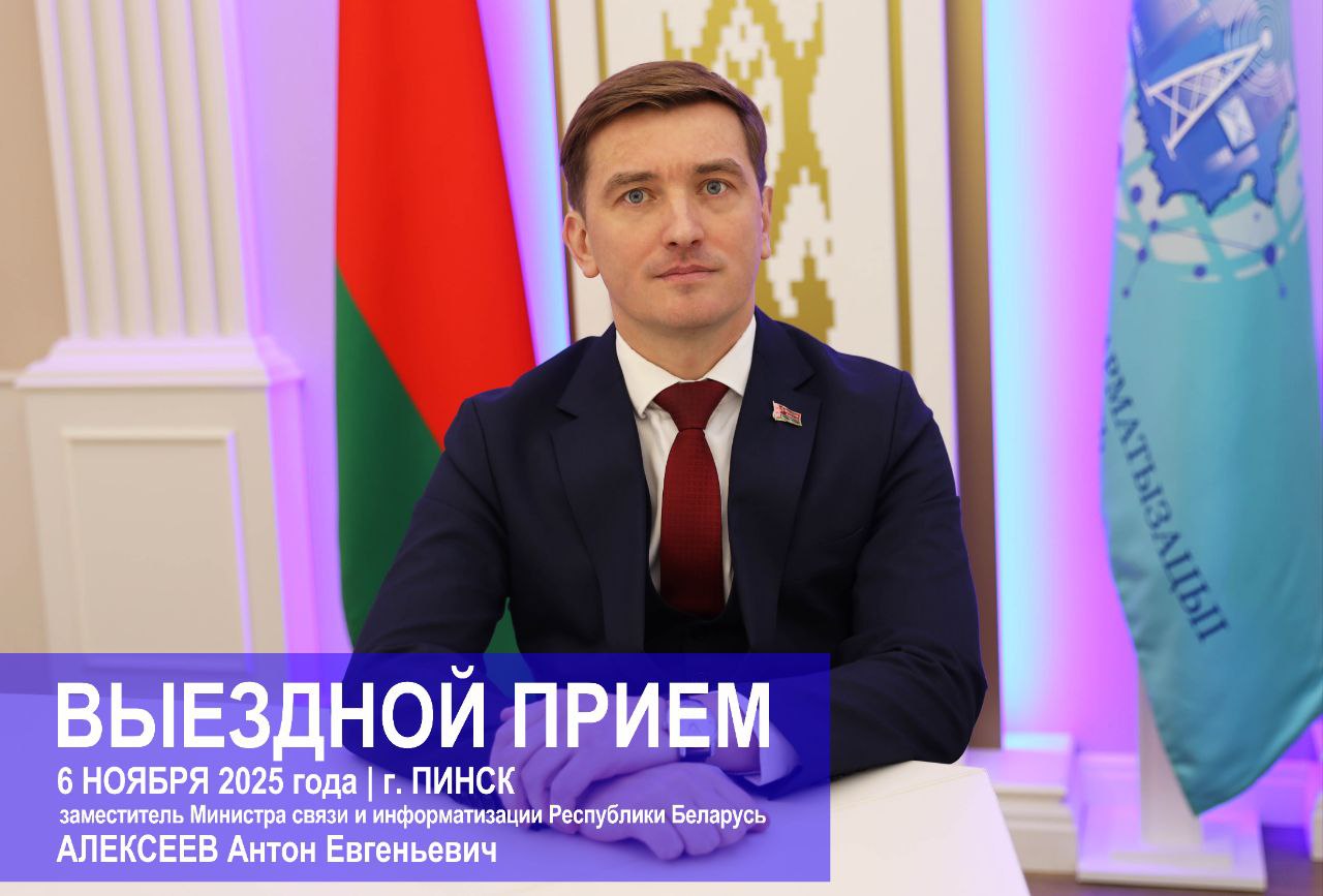 6 ноября 2025 года с 12:00 до 13:00 в Пинском ЗУЭС Брестского филиала РУП «Белтелеком» заместитель Министра связи и информатизации Алексеев Антон Евгеньевич проведет прием граждан и юридических лиц с одновременным подключением «прямой телефонной линии» по телефону: 8 (0165) 65-65-20.Жители г. Пинска и Пинского района смогут задать вопросы, затрагивающие деятельность в области связи (как почтовой, так и электросвязи) и цифрового развития.📝Предварительная запись осуществляется по телефону: (8-0165) 65-65-21 в рабочие дни с 9:00 до 13:00.📍Место проведения приема: Пинский ЗУЭС Брестского филиала РУП «Белтелеком г. Пинск, ул. Заслонова, 15, кабинет начальника ЗУЭС Малюнак PDF