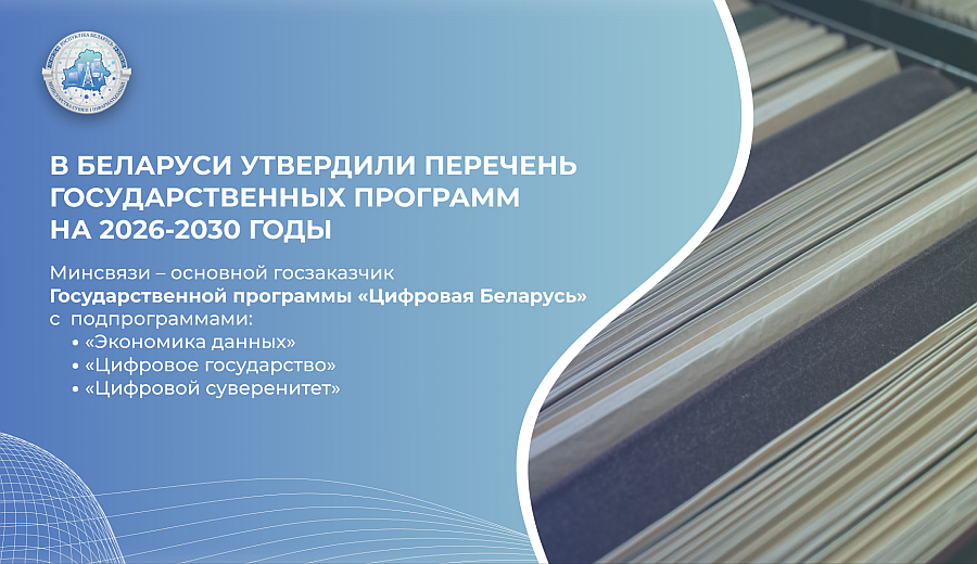 В Беларуси утвердили перечень государственных программ на 2026-2030 годы. Соответствующее постановление подписано Советом Министров. В перечень включены 28 госпрограмм. 18 государственных программ касаются социально-экономической направленности. Они планируются к реализации в текущей пятилетке и являются переходящими на 2026-2030 годы. Две новые государственные программы - "Развитие демографического потенциала" и "Устойчивая энергетика и энергоэффективность". Следующие 8 государственных программ относятся к национальной безопасности в области пограничной, общественной безопасности, обеспечения вооружением и другим. Минсвязи является основным госзаказчиком Государственной программы ”Цифровая Беларусь“ с подпрограммами ”Экономика данных“, ”Цифровое государство“ и ”Цифровой суверенитет“. Малюнак PDF