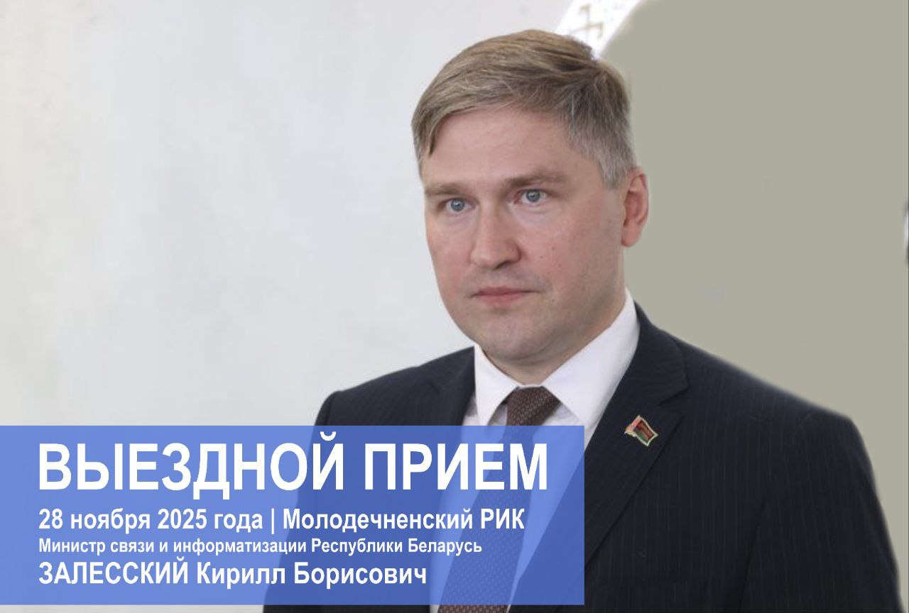 28 ноября 2025 года с 12.00 до 13.00 в Молодечненском районном исполнительном комитете Министр связи и информатизации Республики Беларусь Залесский Кирилл Борисович проведет прием граждан и юридических лиц с одновременным подключением «прямой телефонной линии» по телефону (8 0176) 706558. Жители смогут задать вопросы, затрагивающие деятельность в области связи (как почтовой, так и электросвязи) и цифрового развития. ✍️Предварительная запись на прием осуществляется с 24 по 27 ноября 2025 г. с 8.30 до 13.00 по телефону (8 0176) 706361. �Место проведения приема: Молодечненский районный исполнительный комитет, г. Молодечно, ул. Виленская, 6. Малюнак PDF