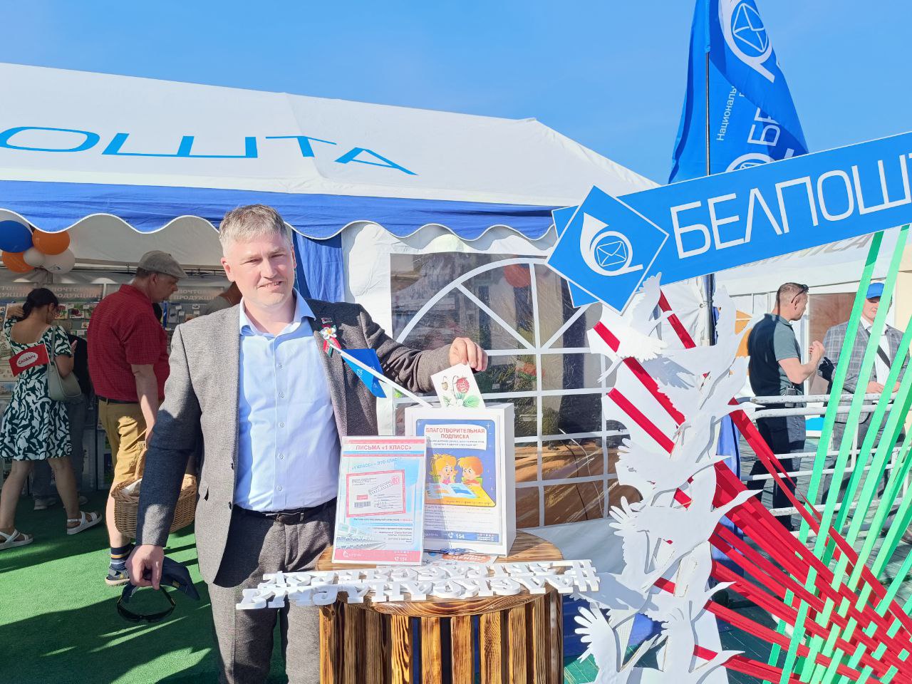 Почетным  гостем  локации  "Белпочта"  стал министр связи и информатизации Кирилл Залесский. Он пообщался с сотрудниками, оценил ассортимент продукции и, конечно же, поприветствовал гостей праздника.