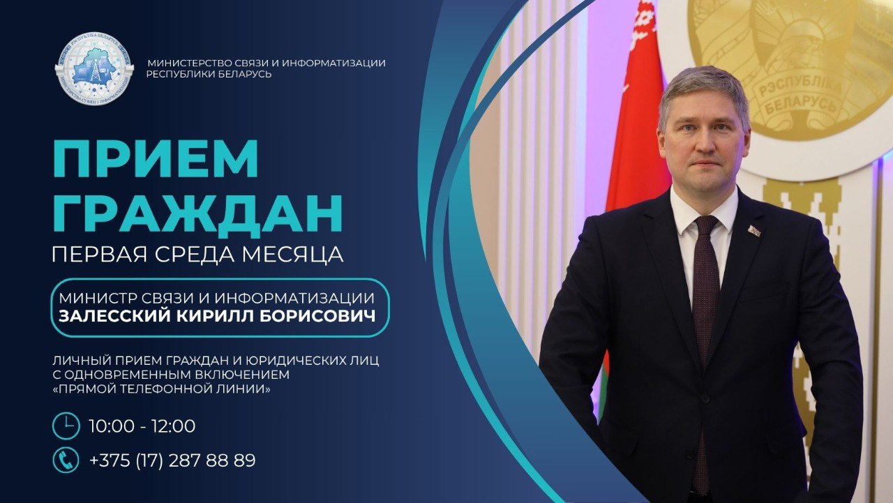 4 июня  2025 года с 8.00 до 13.00 Министр связи и информатизации Залесский Кирилл Борисович  проведет личный прием в министерстве.